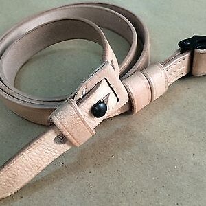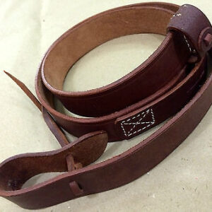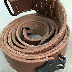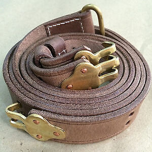 U.S. 1907 WWII Garand Rifle Sling: STEEL Fittings (Repro) NATURAL LEATHER MARKED