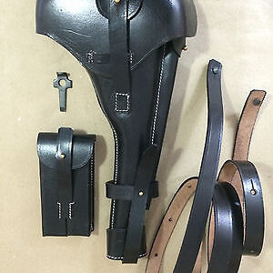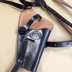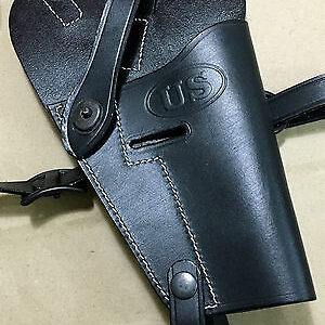 US WWI/ WWII M1916 Colt 45 PATENT (High Gloss) Leather Pistol Holster BLACK