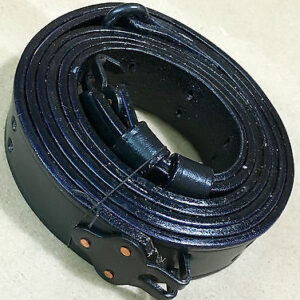 U.S. 1907 WWII Garand Rifle Sling: STEEL Fittings (Repro) BLACK LEATHER