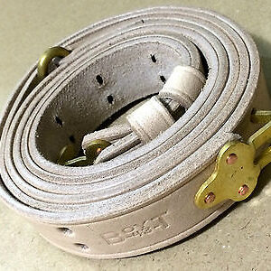 U.S. WWI 1907 Pattern White Leather Garand Rifle Sling: Brass Fittings (Repro)