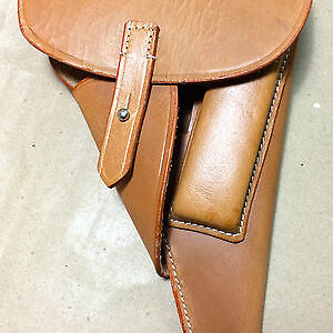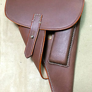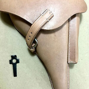 WWII GERMAN Luger P08 6″ inch barrel Holster w. KEY- REDDISH Brown Leather