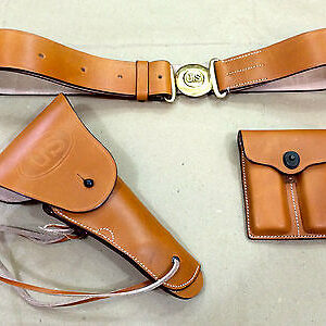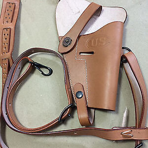 US WWI/ WWII M1916 Colt 45 PATENT (High Gloss) Leather Pistol Holster D-BROWN